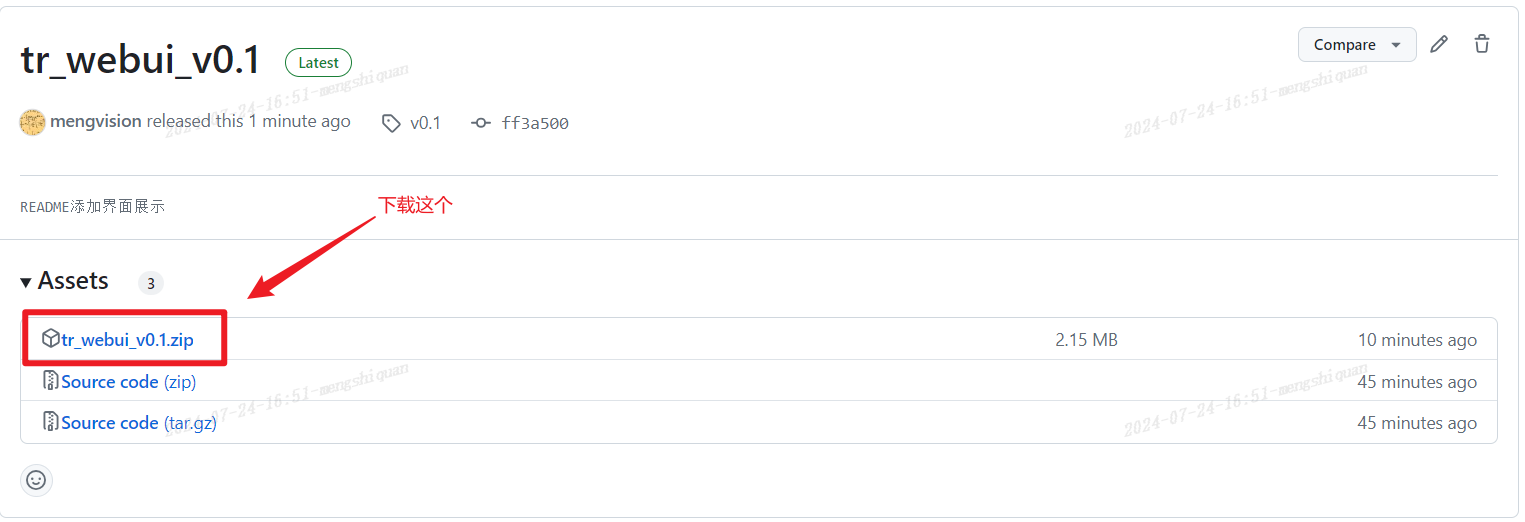 1. 下载Releases种的zip文件,例如tr_webui_v0.1.zip