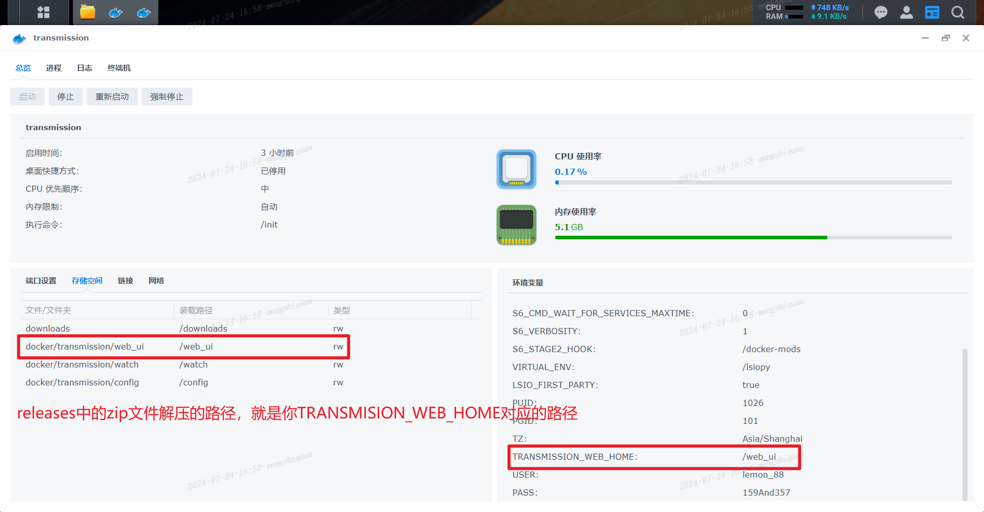 - TRANSMISSION_WEB_HOME=/web_ui ## 使用transmission web ui得设置这个环境变量